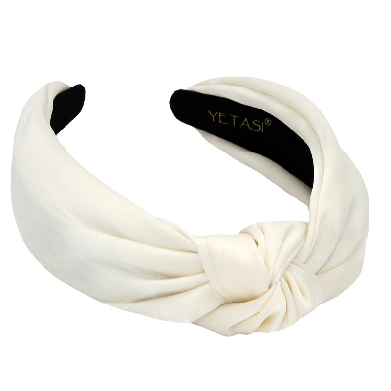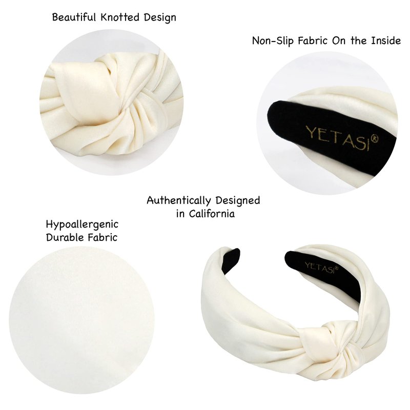 YETASI Satin Headbands for Women, Off-White Knotted Headband Made of Non-Slip Material, Silk Quality Satin Fabric Adjustable Top Knot Head band