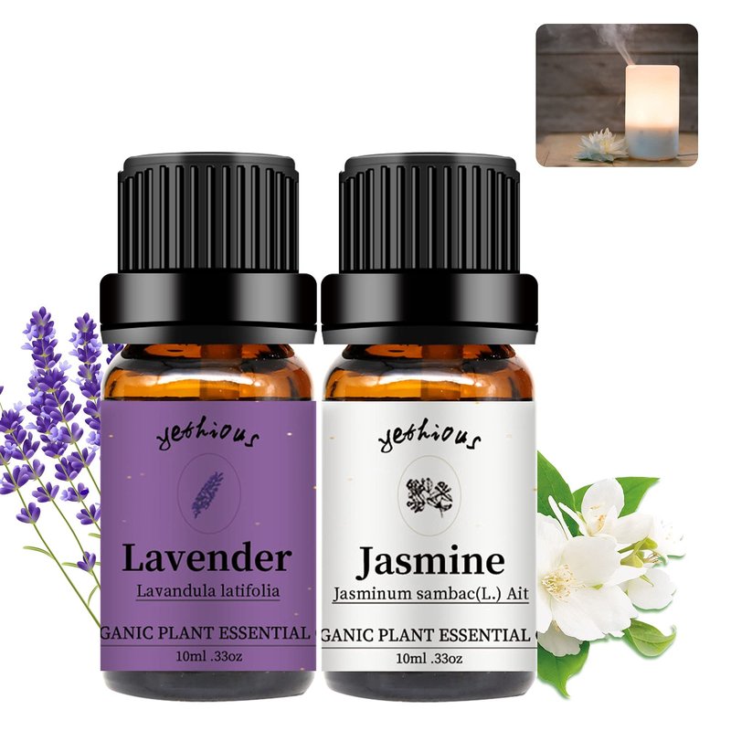 yethious Jasmine Lavender Essential Oil Set Organic Pure for Jasmine Essential Oil for Diffuser & Aromatherapy Lavender Oil Set