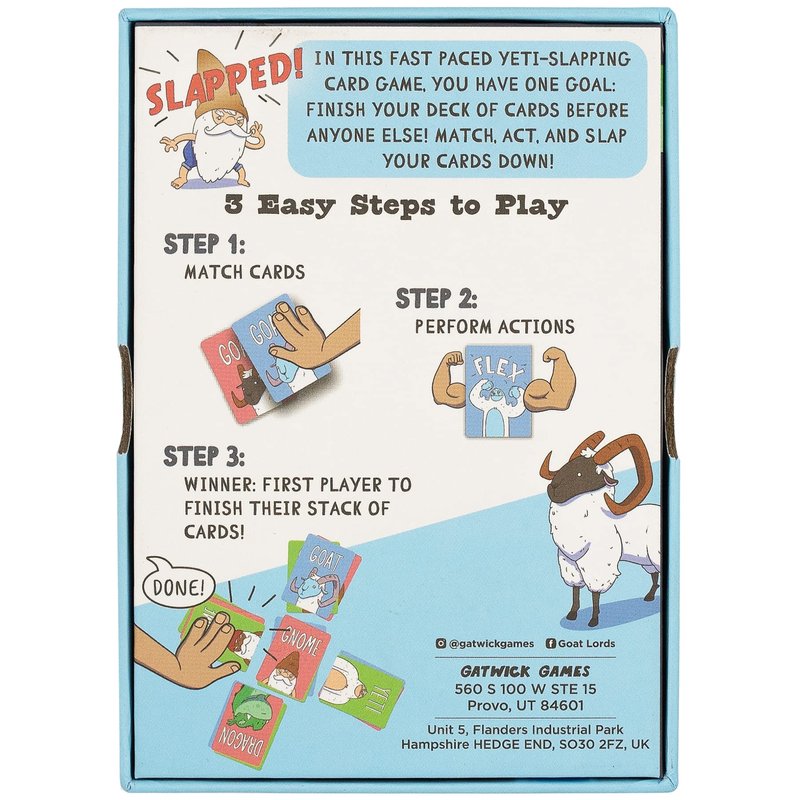 Yeti Slap is a new card game by Gatwick Games where players slap down their cards in an epic attempt to get rid of them all before anyone else. A sweet balance of speed, attentiveness, luck, and strategy is needed to win! An amazing and quick game at an even better price! Join the Gatwick Family today by adopting this card game in to your home today!