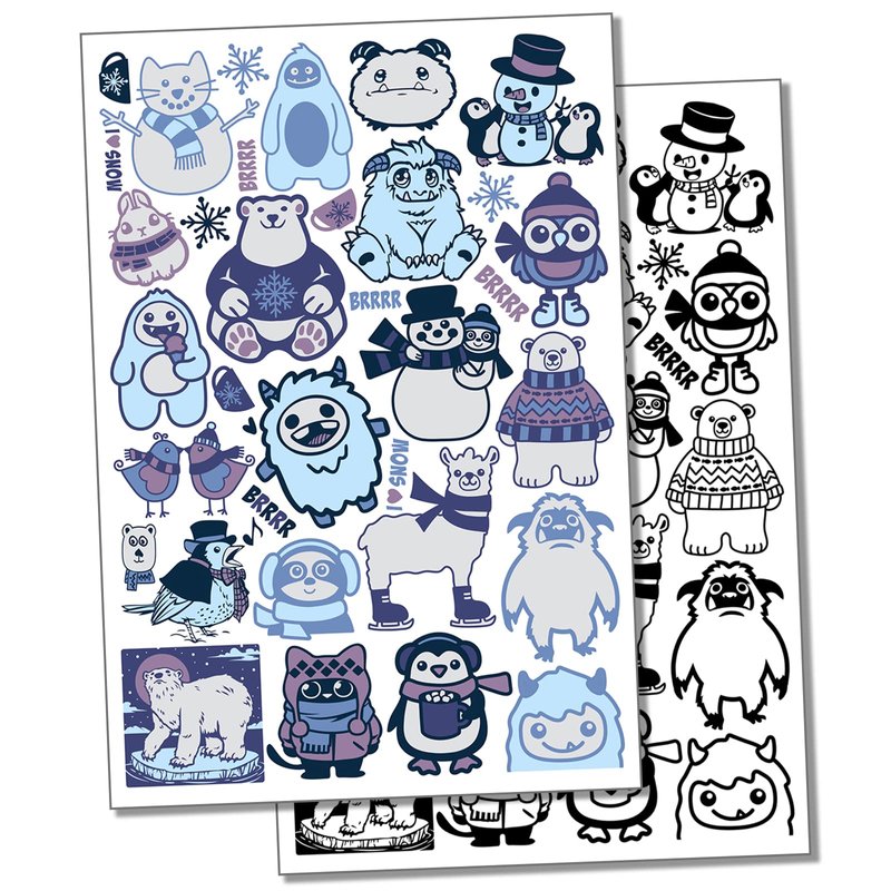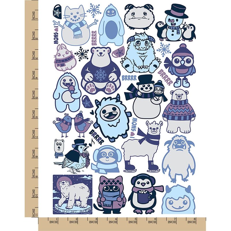 Yetis and Winter Animals Temporary Tattoo Water Resistant Fake Body Art Set Collection - Color (One Sheet)