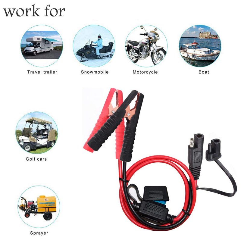 - Alligator Clip: Fast and easy to connect and disconnect. Exactly suitable for a short period of battery charging, readily clip on then start charging.