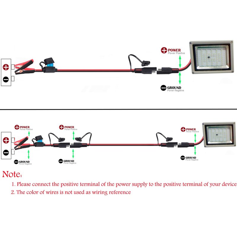 - Specification: Alligator Clips with 10AWG Cable, 2 Feet long,With 15A fused for electrical protection; Fast and easy to connect and disconnect.