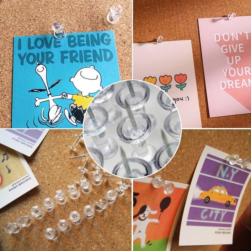 - šćEXCELLENT MATERIALć: Clear push pins are composed of plastic heads and steel tips, which are reliable and sturdy, not easy to bend or break. The transparent color of the bulletin board pins will not affect the original appearance of the things they fix.