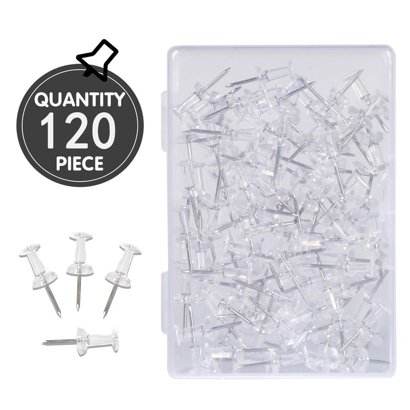 - šćPRODUCT PACKAGINGć: Push pins (120pcs) for fixing paper, photos, etc. to bulletin boards, including cork board, foam board or cardboard. These thumb tacks can meet our daily use very well, and we can also share it with family and colleagues.