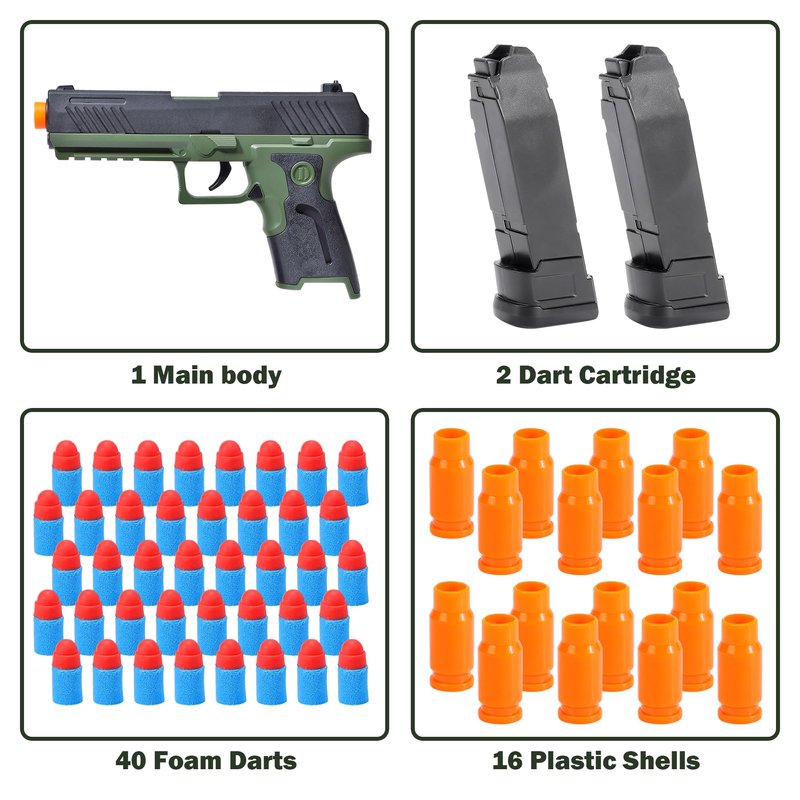 - This engaging set includes 40 soft foam projectiles, 16 reusable plastic casings, and 2 projectile holders, allowing for extended play sessions and friendly competitions with others