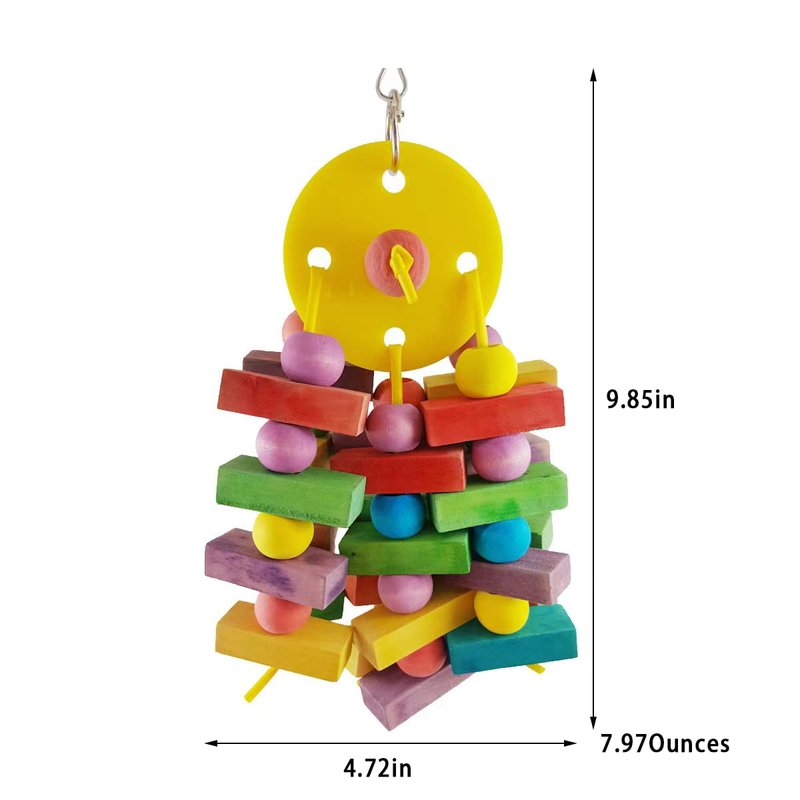 - Our parrot bird toy is made of pure natural wood. All dyed with food coloring, hand finished, safe for birds, innovative, unique design, very bite resistant and more durable.