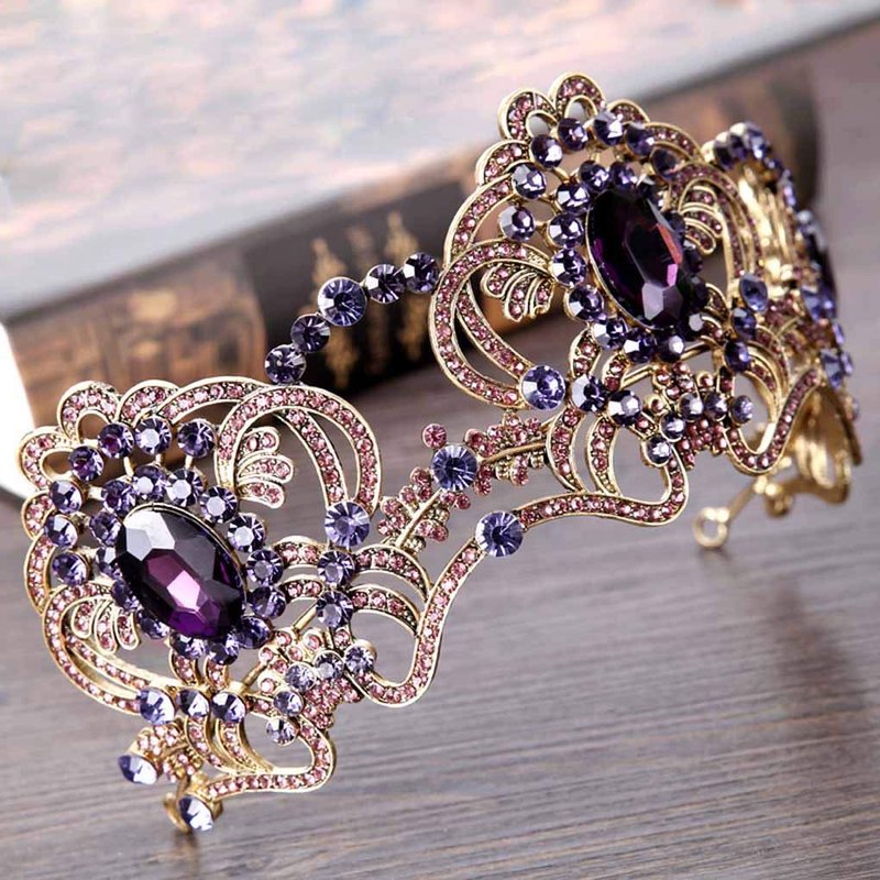 Yfe Wedding Bridal Crown Purple Retro Vintage Crowns and Tiaras for Women and Girls Prom Costume Headband