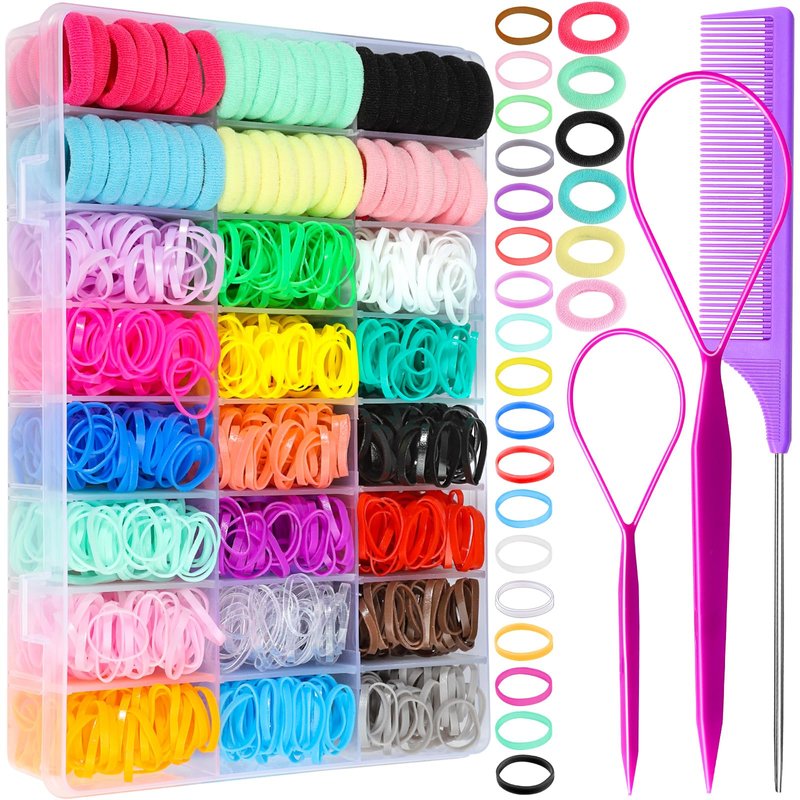 YGDZ Elastic Hair Bands, 1500pcs Rubber Bands for Hair, 80pcs Cotton Toddler Hair Ties, Colorful Small Ponytail Holders, Hair Accessories for Girl, Toddler
