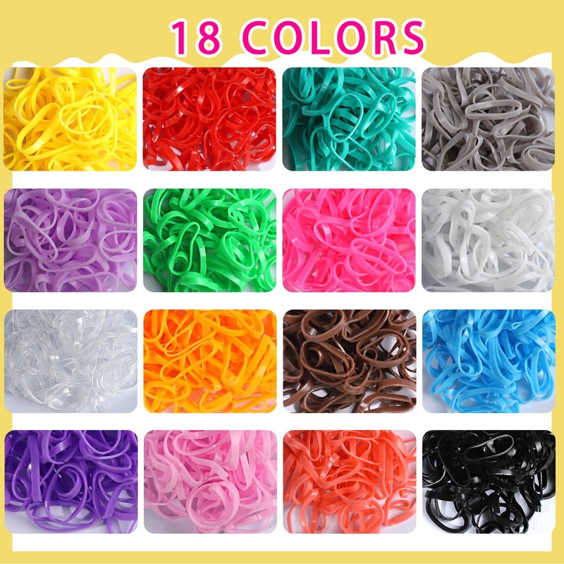 18 COLORS RUBBER BANDS FOR HAIR WITH ORGANIZER BOX Included in this package is 1500PCS hair bands in 18 different bright & fun color . Made of high quality TPU material, the hair band has good elasticity, not easy to break, comfortable to wear, and firmly holds adults' and kids' hair. Every color is organized in a nice box so it is easy to choose your color and stay mess free!