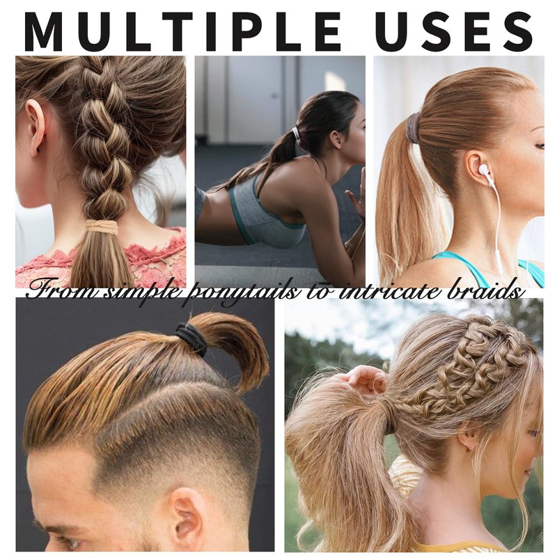 - MULTIPLE USES With 150pcs hair ties , you can create a variety of fun hairstyles, from simple ponytails to more complex updos, braids, and more. Super stretchy, soft and comfortable hair elastics, gentle on your hair, suitable for various occasions such as school, home, office or while working, playing sports or playing. Whether you're jogging, swimming, hiking, biking, doing yoga, working out or just keeping cool, they're perfect for keeping your hair in a ponytail at any time.