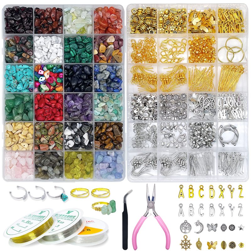 ygorios Jewelry Making Kit for Adults - 1760 PCS crystal beads for bracelets making , earring kits for jewelry making with 960 PCS Crystal Beads, 800 PCS Jewelry Findings, DIY Jewelry Bracelet, earring [Include All Materials & Tools You Need] ] This adult bracelet making kit contain about 960 PCS natural stone beads of 24 assorted colors, 800 PCS jewelry findings include earring hooks, jump rings, lobster clasps, 9-head pin, t-head pins. Jewelry making supplies with pendants, charms, blank ring, jewelry wire. Jewelry making tools includes jewelry pliers, tweezers. a complete set of crystal jewelry making kit to meet your different needs for making necklaces, bracelets, earrings and ring. [Gemstone beads for jewelry making] Our natural stone beads for jewelry making are real and natural, natural gemstone beads are well polished in irregular shapes and varied in different sizes from 5 mm to 10 mm, drilled with 1mm hole. Great earring making kit and necklace making kit for adult and teen. [High-quality Material] Earring making supplies included all jewelry finding and materials are hypoallergenic. Safe beading kit for you to beading & jewelry making. Great earring making kit and bracelet making kit for adults. [Perfect for Beginners] The jewelry making kit included all the tools, parts, and materials to get you start to DIY beautiful and unique bracelet, earring, necklace, ring. not only necklace making kit for adults, also jewelry making kit for teen. [Giftable Package] Beautiful and meaningful jewelry making gift for adult/teens who love crafting and jewelry making. Perfect lovely and meaningful gift for birthday, Valentine's Day, Christmas, Mother's Day, Thanksgiving etc.