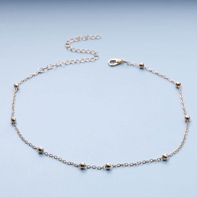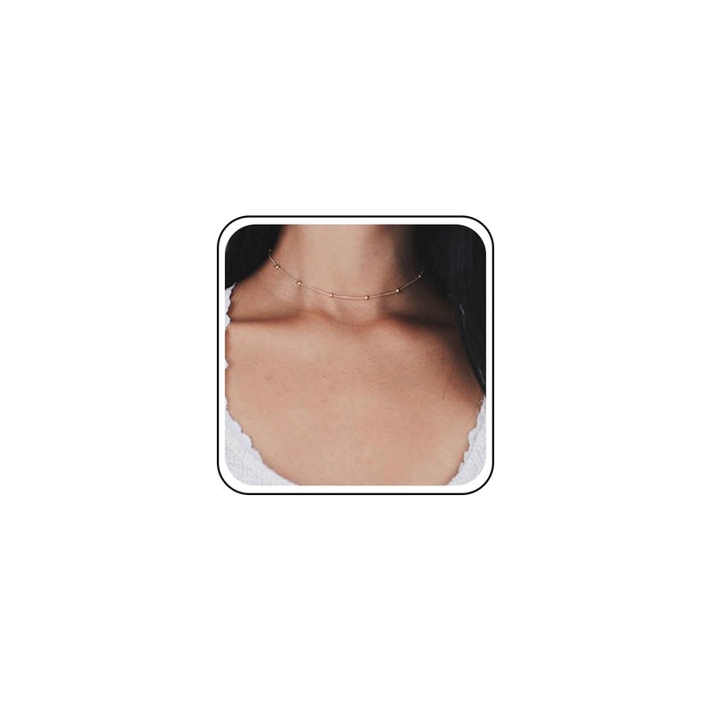 Yheakne Boho Thin Beaded Choker Necklace Gold Station Ball Necklace Short Satellite Chain Necklace Everyday Minimalist Necklace Jewelry for Women (Gold)