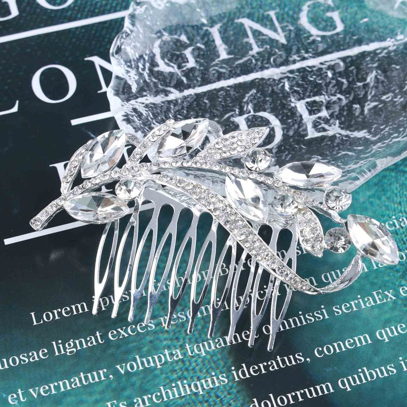 Yheakne Crystal Wedding Hair Comb Silver Rhines...