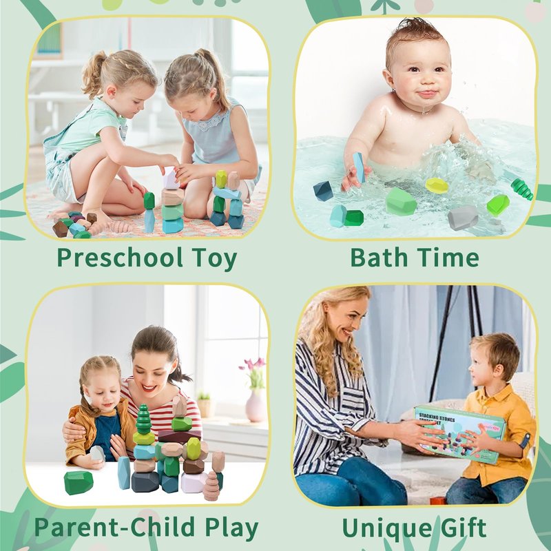 - Safe and Durable Material: The wooden stacking toys for toddlers are made of high-quality durable natural wood and coated with non-toxic water-based paint. The hand-polished smooth edges of stone balance building blocks ensure safety for little hands