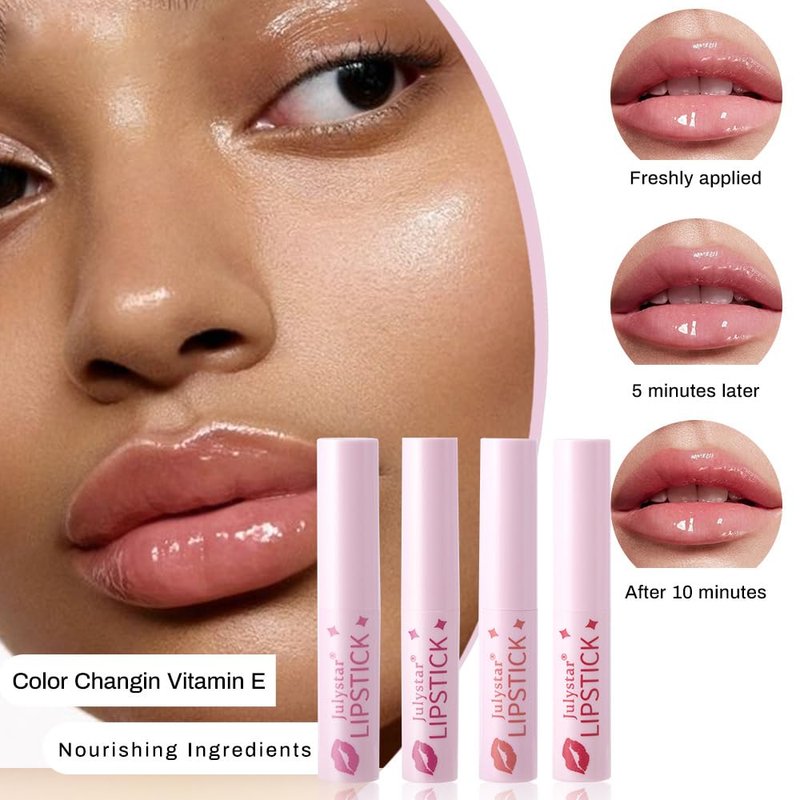 YIBABY 4 Pcs Fruity Colour Changing Lipstick, Moisturizing and Long Lasting Lip Balm with Vitamin E, Hydration, Lightweight Texture, Tinted Lip Balm with Gift Box for Girls and Women (B, 4 PCS)