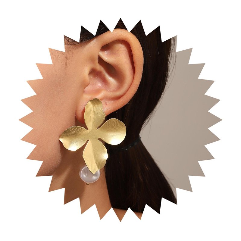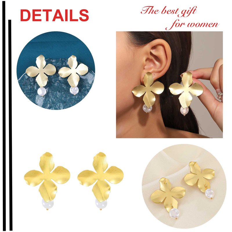 - 【Exquisite and Simple】The personality large flower earring perfectly highlights the beauty of this earring jewelry through the petal stud earrings and pearl drop earrings.