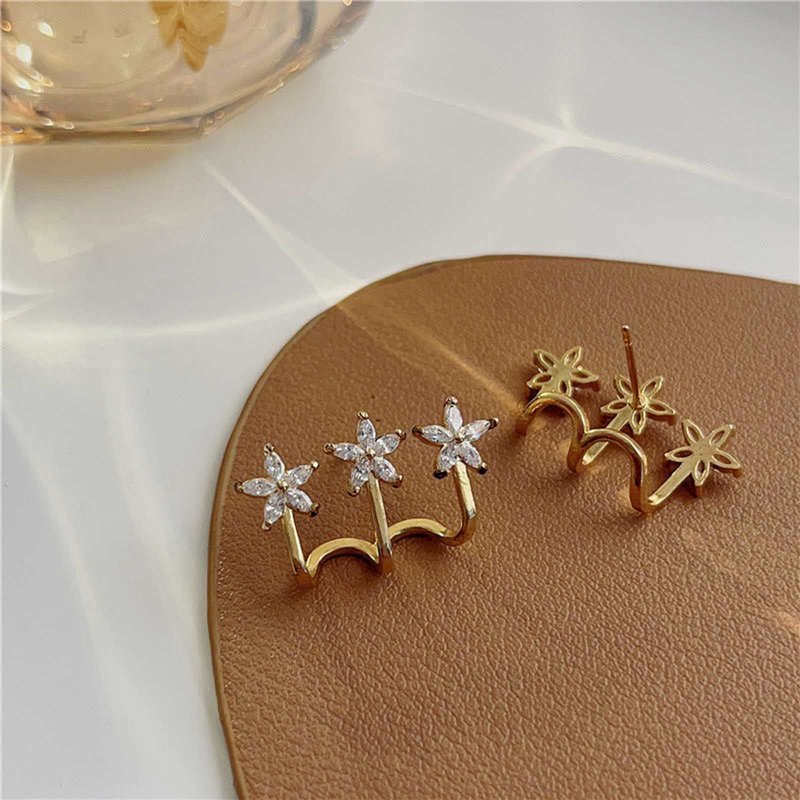 YienDoo Crystal Star Cuff Wrap Earrings Gold Claw Cuff Earrings Rhinestone Star Ear Jacket Star Cluster Stud Earrings Statement Sparkly Crystal Flowers Crawler Earrings Jewelry for Women and Girls