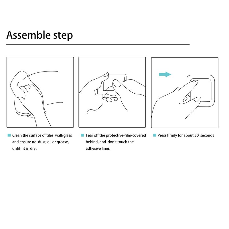 - Installing without Drilling: Just peel off film of adhesive pad and stick it on the smooth wall surface, then press for several seconds.