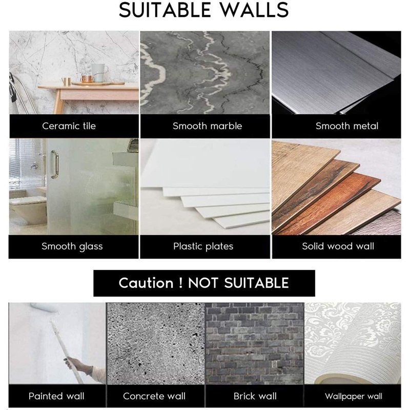 3) Attention:Must be smooth surface (not suitable for limestone wall, wall paper or painted wall).