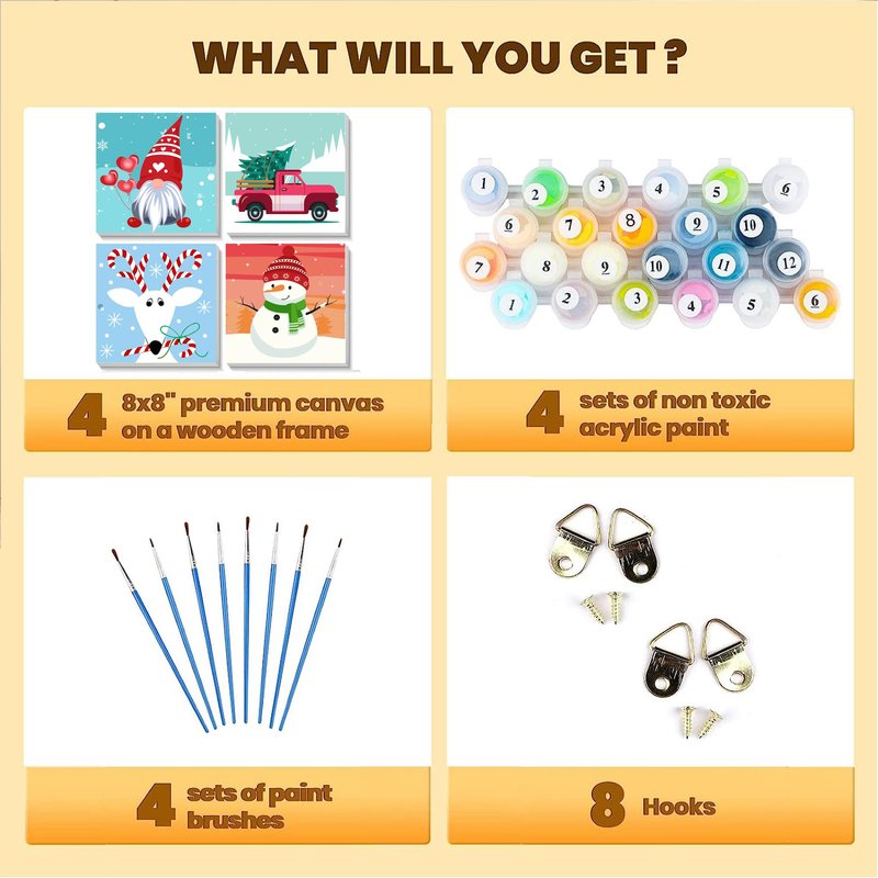 Yijingtop 4 Packs Framed Chrsitmas Paint by Numbers Kit for Kids Ages 8-12,Snowman Easy Acrylic Paint by Number Framed on Canvas,Number Painting Paint by Numbers Kit for Home Wall Decoe 8x8inch