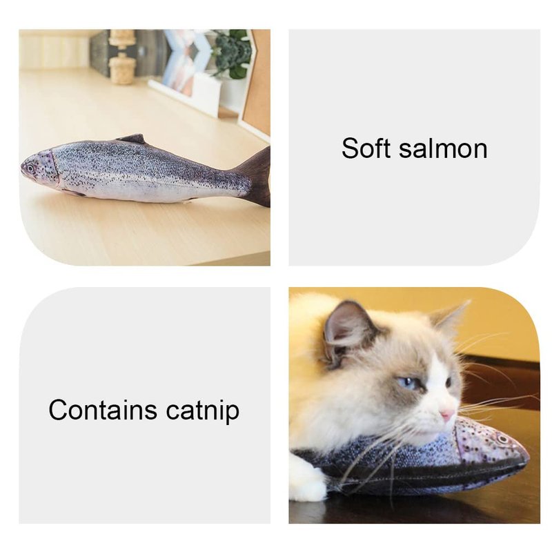 - 【Realistic Fish Shape】Using 3D printing process, the shape is made of realistic salmon shape, which can attract your cat's attention and become a toy it will love.