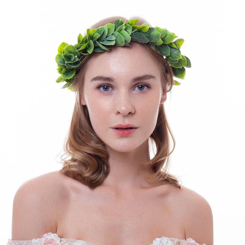 Yili Maizi Artificial Green Leaf Crown Eucalyptus Flower Wreath Women Girls Bohemian Headpiece Floral Headband Photo Prop