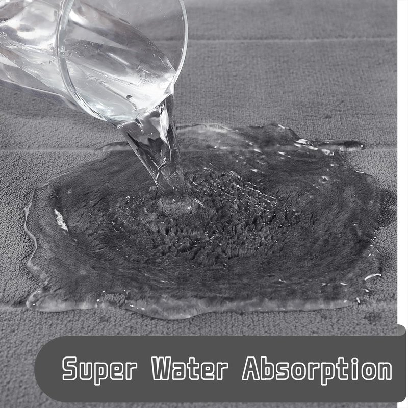 - Super Water Absorption: The soft velvet microfiber layer can absorb as much water as possible from your wet feet. And the water do not stay on the surface on the bath mat