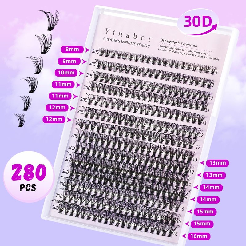 - 【Comfortable Experience】: Enjoy a soft and comfortable wear with the Yinaber lash clusters Kit that ensure comfort without any burden. Create a customizable lash look with our individual lash clusters Kit, available in a range of lengths and volumes (8-16mm,30D). Cluster lashes are versatile and suitable for various occasions, whether you're having a night out with friends, attending a special event, or during a workday. You'll complete all these looks effortlessly in no time!