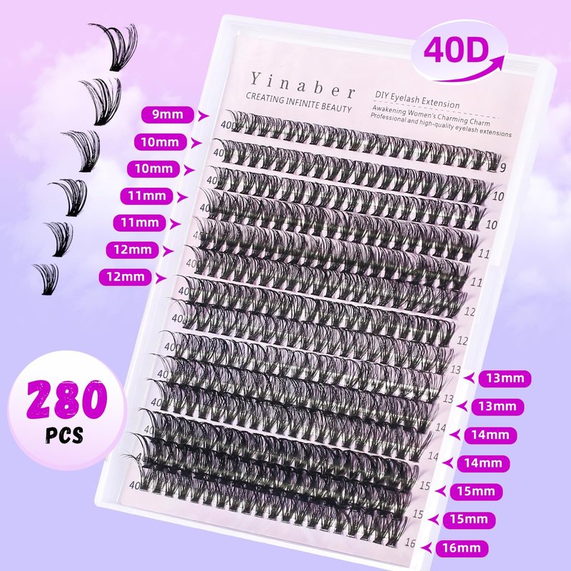 - 【Comfortable Experience】: Enjoy a soft and comfortable wear with the Yinaber lash clusters Kit that ensure comfort without any burden. Create a customizable lash look with our individual lash clusters Kit, available in a range of lengths and volumes (9-16mm,40D). Cluster lashes are versatile and suitable for various occasions, whether you're having a night out with friends, attending a special event, or during a workday. You'll complete all these looks effortlessly in no time!