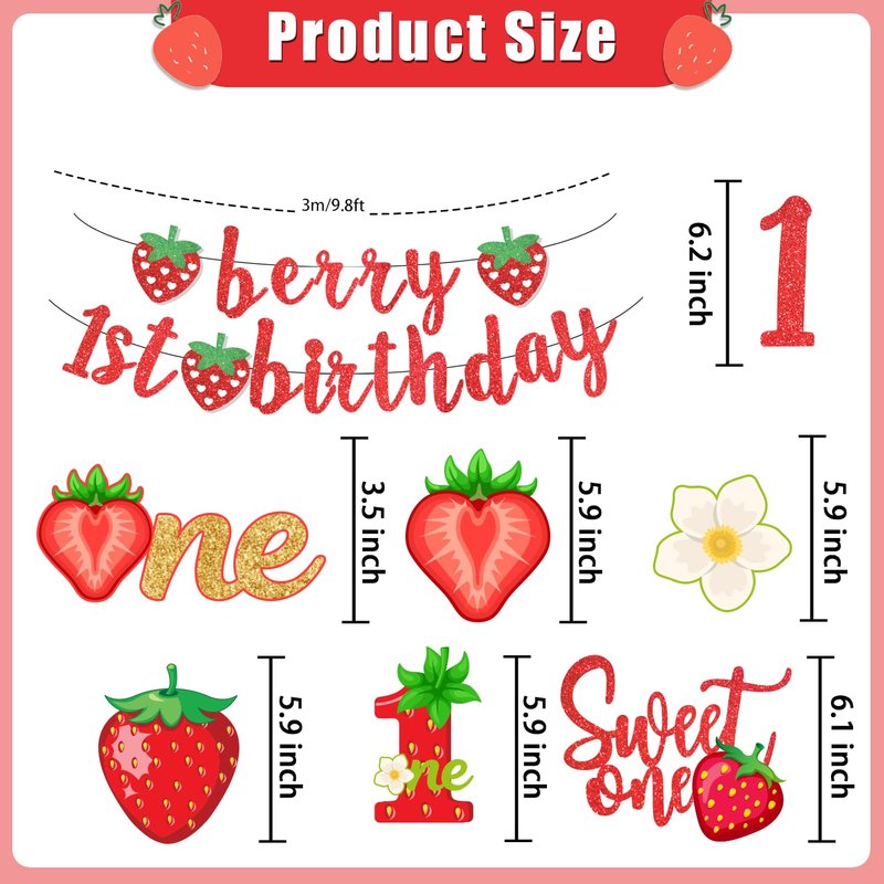 - Wide application: Berry 1st birthday decorations are suitable as gifts for family members, mates, relatives, neighbors, and other people you care about, bringing lots of gaiety and delight while celebrating the most meaningful time of the year. Also be applied as a souvenir to ornate your strawberry birthday party, which is able to bring a funny and happy feeling to your family guests