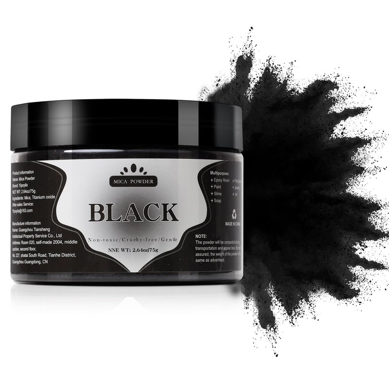Yipoyilo Mica Powder - 75g Mica Powder for Epoxy Resin - Metallic Color Pigment for Resin, Soap, Bath Bombs, Eye Shadow, Nails, DIY Crafting Projects etc. (Black)