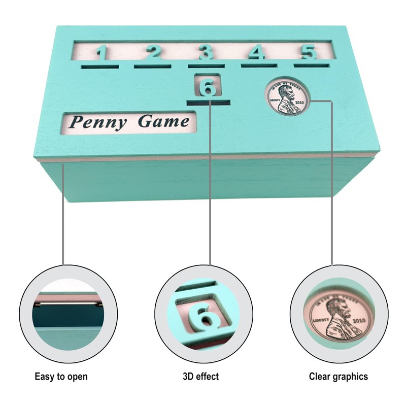 - SIMPLE TO PLAY: Get rid of your coins to win! Roll the die and place your penny in the corresponding slot. Choose to roll again or pass. If you roll a number that already has a coin in the slot, you collect all of the coins from the slots.