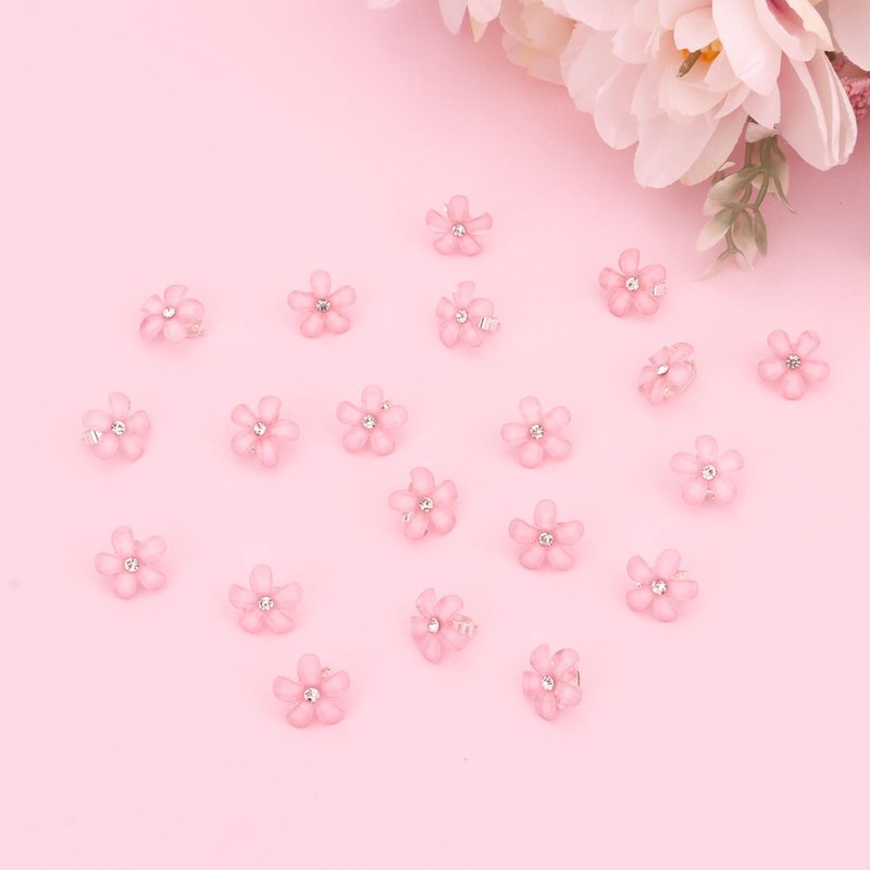YISSION 20Pcs Mini Pink Flower Hair Clips with Rhinestone Cute Hair Clips Flower Hair Pins Decorative Hair Clips Wedding Hair Barrettes Bridal Flower Hair Accessories for Girls Women