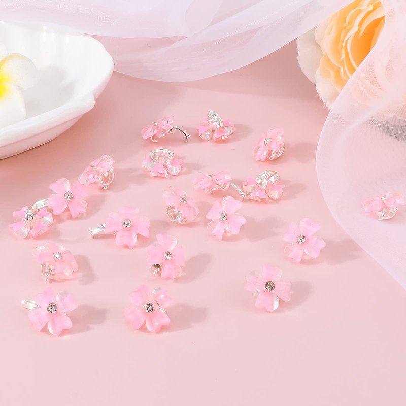 YISSION 20Pcs Mini Pink Flower Hair Clips with Rhinestone Cute Hair Pins Decorative Hair Clips Wedding Hair Barrettes Bridal Hair Accessories for Girls Women
