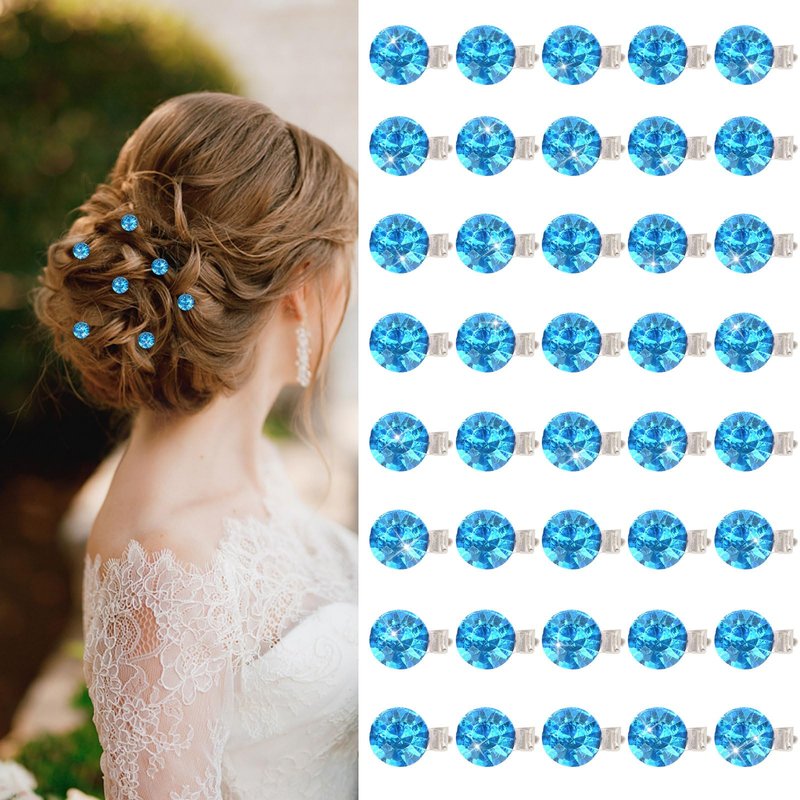 YISSION 40Pcs Mini Rhinestone Hair Clips Sparkly Crystal Hair Pins Small Decorative Hair Clips Wedding Hair Barrettes Blue Hair Clips Bridal Hair Accessories for Girls Women