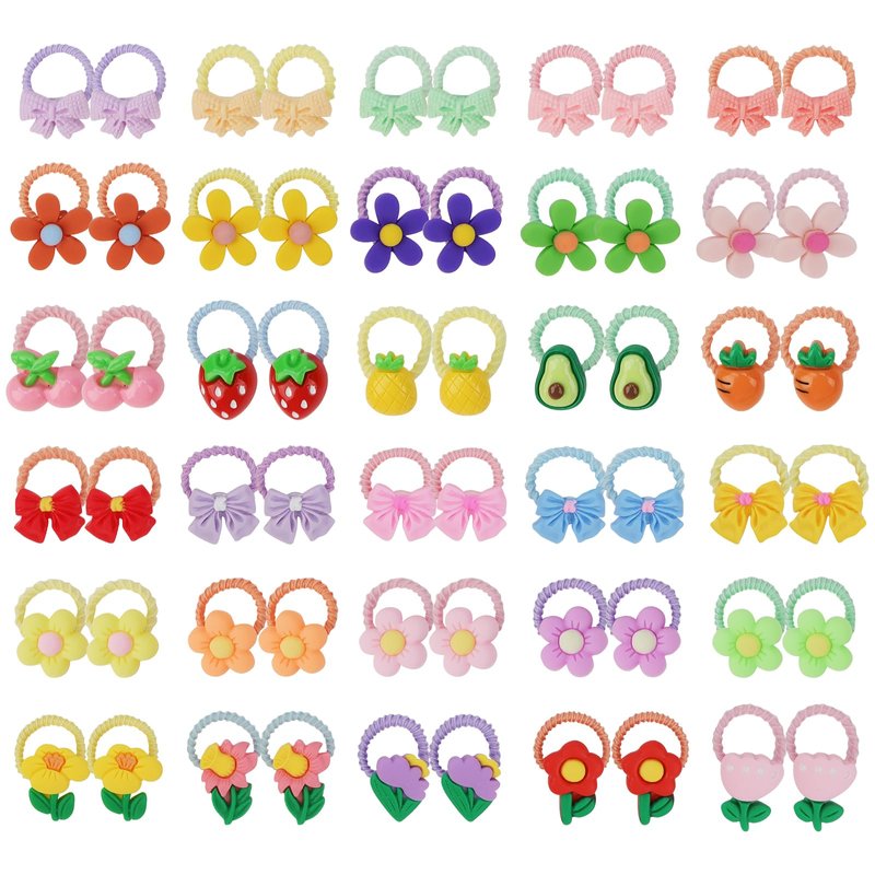 - Package: 60pcs girls hair ties with cartoon flower, bow and fruits. A variety of styles and colors for girls to match with different clothes.