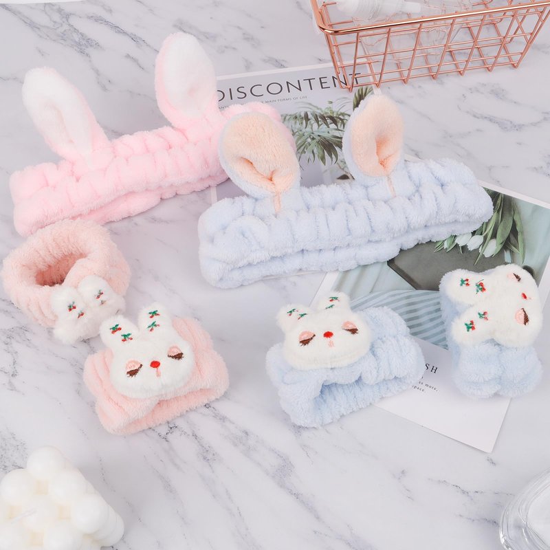 - Package: 2pcs bunny ears headbands and 4pcs wristbands for washing face, spa, skincare, making up and so on. The set is strong practicality and good-looking, making your life more sophisticated.