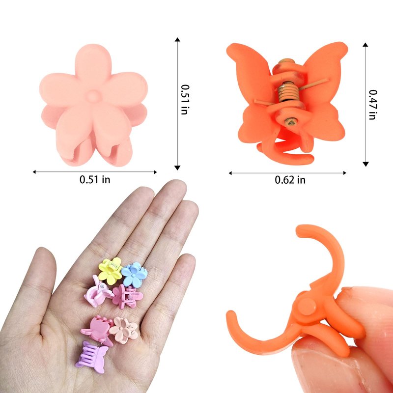 - SIZE: The size are show in the picture, small and cute, easy to carry. And the mini claw clips are lightweight, which won't put any strain on your hair or scalp, comfortable to use.