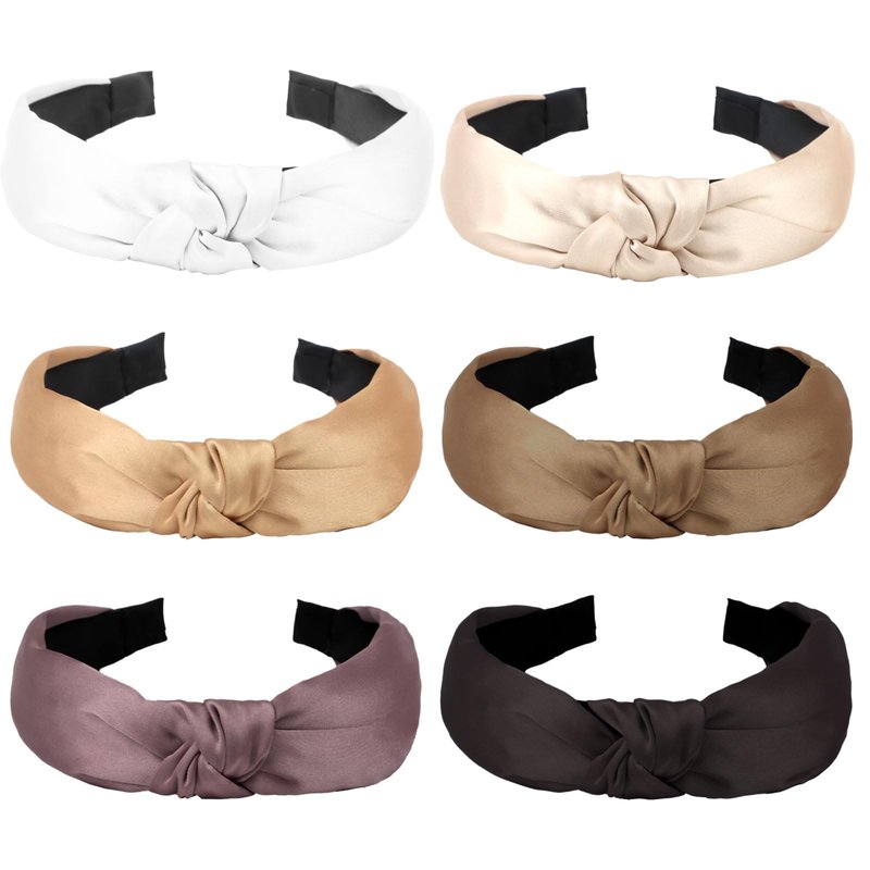 YISSION Knotted Satin Headbands for Women - 6PCS Fashionable Non-Slip Top Knot Hair Accessories in Black, White, and Neutral Shades