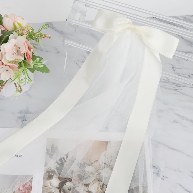 - White Bride Veil: The design of the veil with a bow adds a playful touch to the monotonous veil, making you stand out in the crowd.