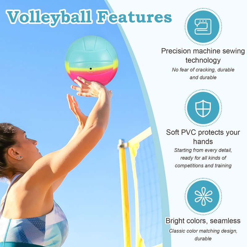 - 【High-quality material】Our volleyball is made of high-quality PVC material, the training volleyball is reliable and strong, has good flexibility and elasticity, reliable and strong, the color is clearly printed, does not fade easily and can be used for a long time. (beach volleyball was delivered without air and does not have an air pump. Please inflate the volleyball before use.)