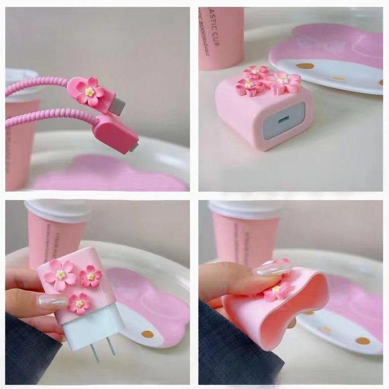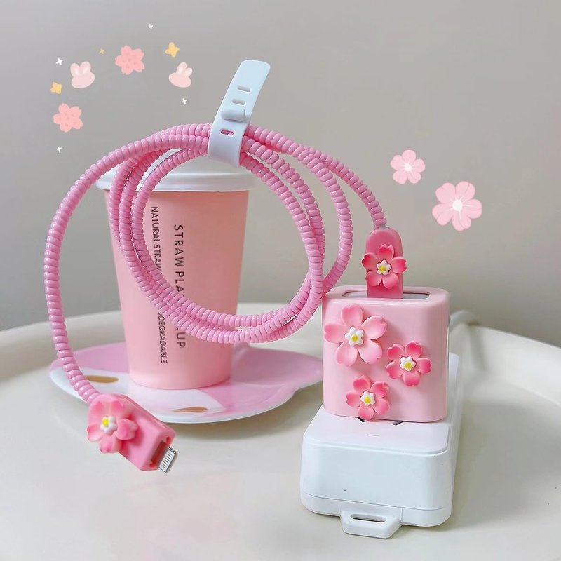 - [Ideal gift] This protective cover with fashion pink 3D flower cherry blossom design to decorate the charging cable plug, attracting attention and extending the service life of the plug data cable without affecting charging and heat dissipation. It is a great mobile phone accessory that can be given as a gift to children, family, and friends who are troubled by problems such as damaged data cable interfaces.