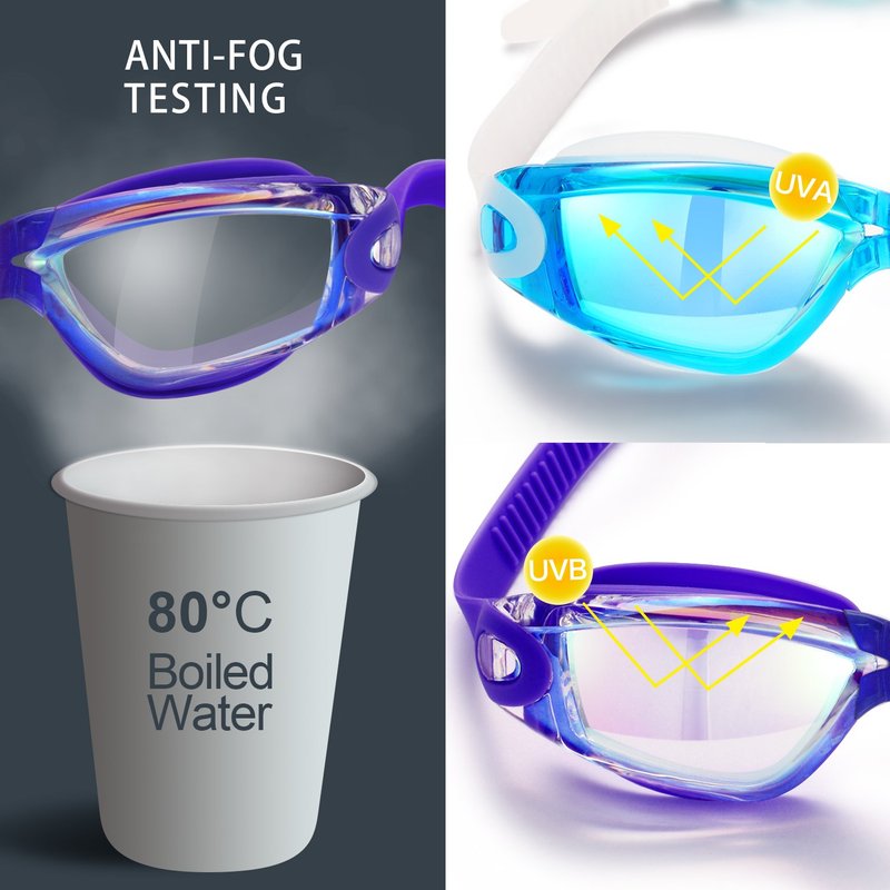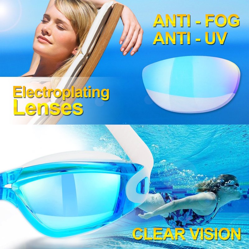 - CRYSTAL CLEAR VISION - Latest Electroplating Technique and High-tech Mirrored Coating for the lenses can filter out harmful rays and protect your eyes from direct sunlight, which provide you good visibility. Advanced UV protection and anti-fog coating can enhance your swimming experience.