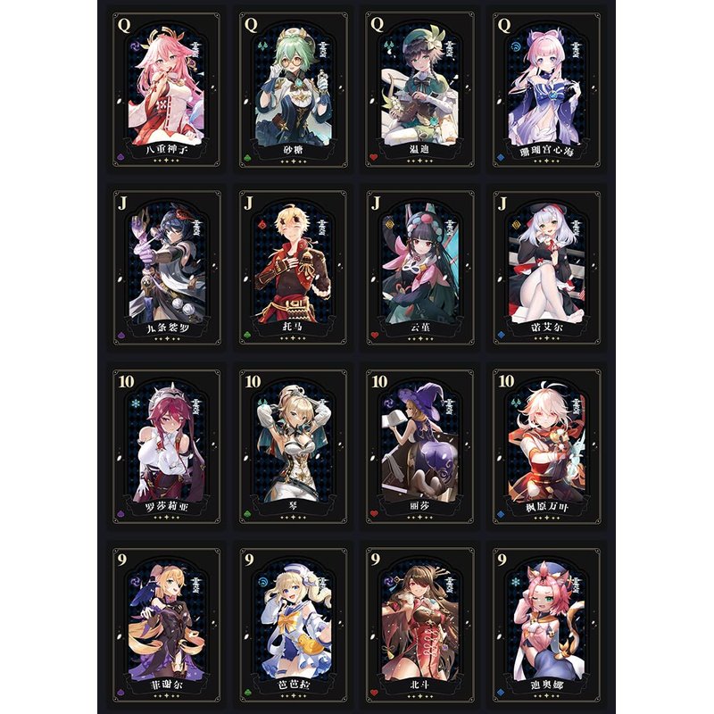 - Includes 54 cards featuring various characters from Gesnshin Impact