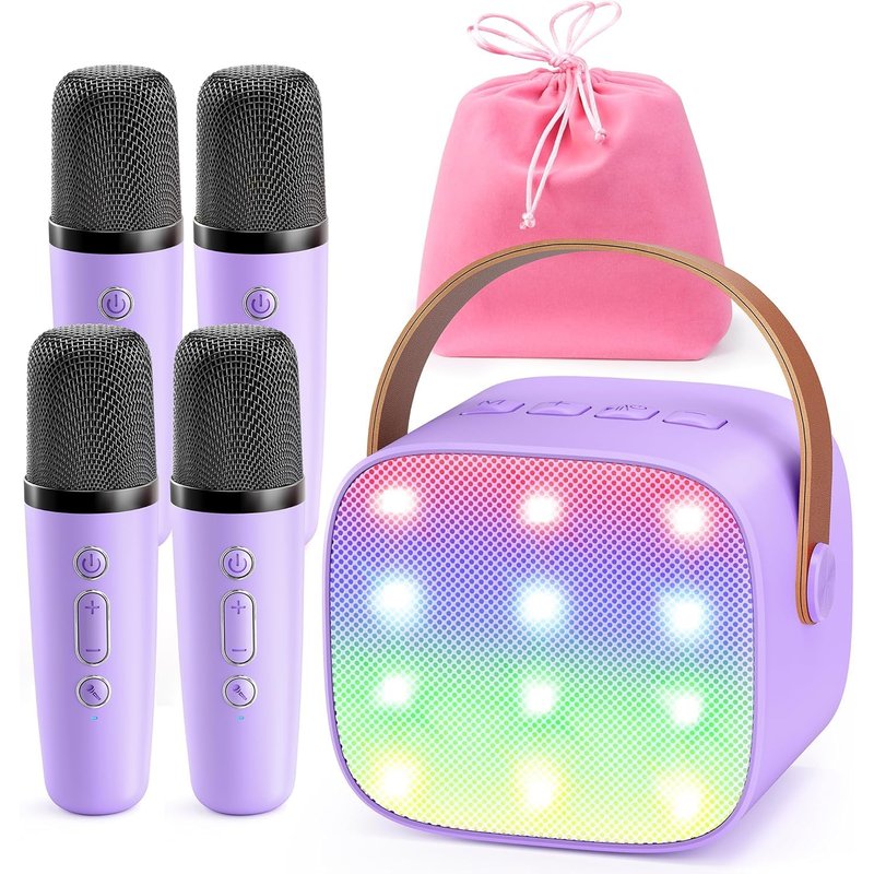 YLL Mini Karaoke Machine for Kids Adults: Portable Loud Speaker with 4 Wireless Microphones - Christmas Birthday Party Gifts for Girls 3,4,5,6,7,8+ Year Old Toys(Purple)