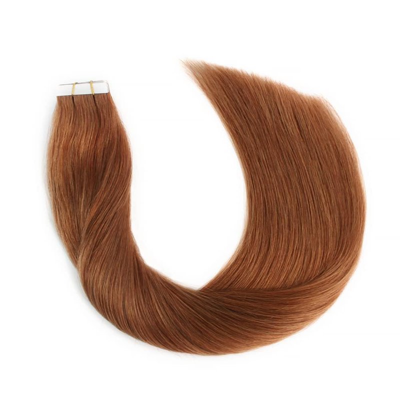 YMEYME Tape in Hair Extensions Human Hair Invisible Reusable Seamless Skin Weft Remy Tape Hair Extensions 20Pcs 50g #30 Auburn 18inch