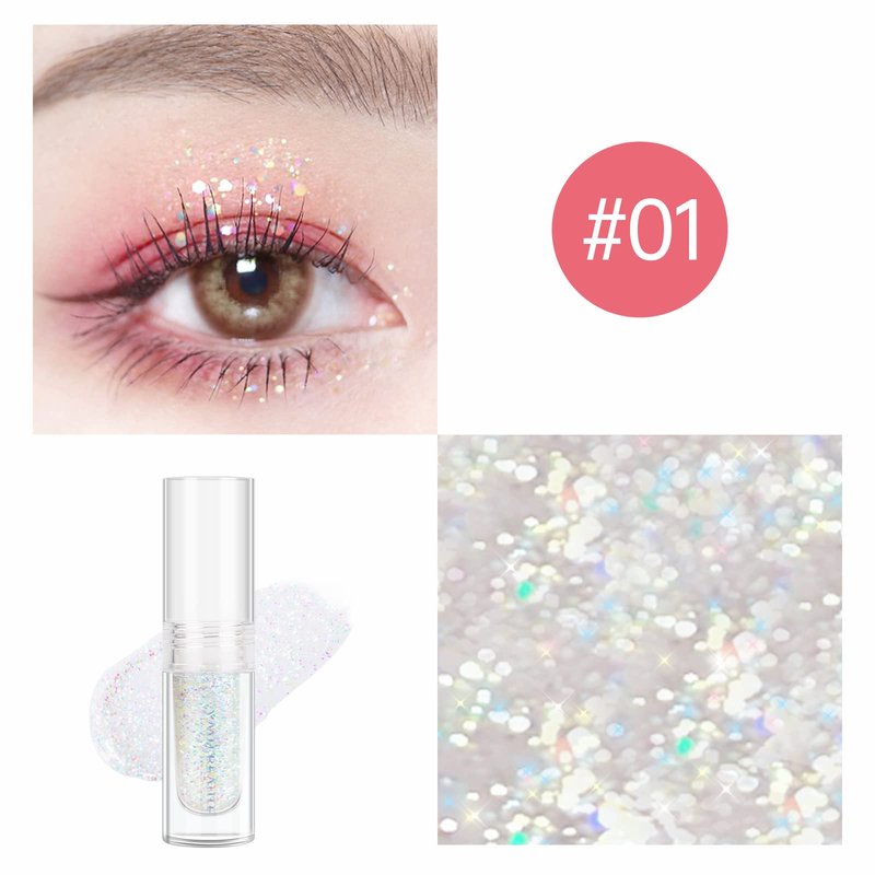 - This Liquid Glitter Eyeshadow Contains Four Colors to Choose: 01 Colorful Diamond Glitter with Clear Glue Liquid Eyeshadow; 02 Light Pink Pearl Glitter Liquid Eyeshadow; 03 Holographic Peach Gold Shimmer Liquid Eyeshadow; 04 Sparkle Champagne Gold Metallic Liquid Eyeshadow
