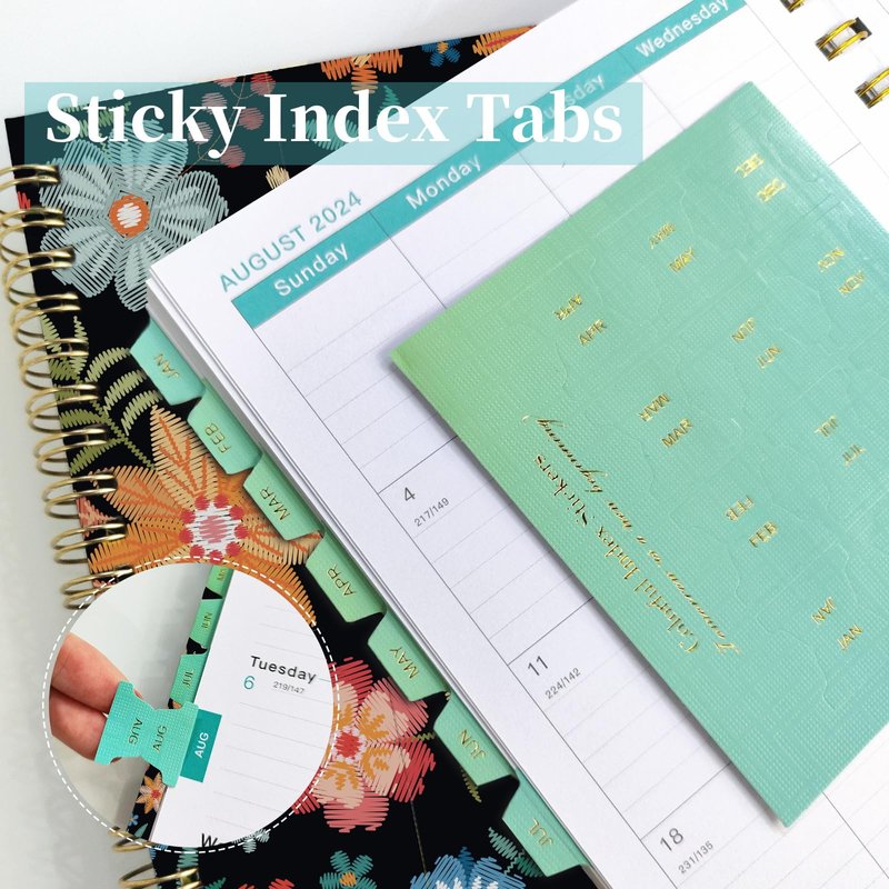 - 【PROFESSIONAL DESIGN 】Planner Front Cover | Yearly Overview | Contacts | Quick Reference Information | Monthly Inner Tabs | Holidays | Weekly and Monthly Pages | Twin-Wire Binding | Inner Pocket | Elastic Closure | Stickers. 12 monthly sticky index tabs for planning annual stuff, just peel them off and stick them on the monthly planning pages.