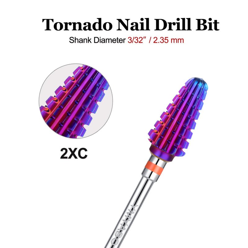 YMYABO Nail Drill Bit,Professional 3/32" Purple Tornado Carbide Tungsten Multifunction Bits, Fast Remove for Hard Gel and Acrylic, Manicure Pedicure Cuticle Nail Polishing Tool-2XC