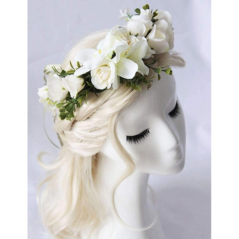 YnimioAOX Handmade Adjustable Flower Wreath Headband Halo Floral Crown Garland Headpiece,A11-pure white